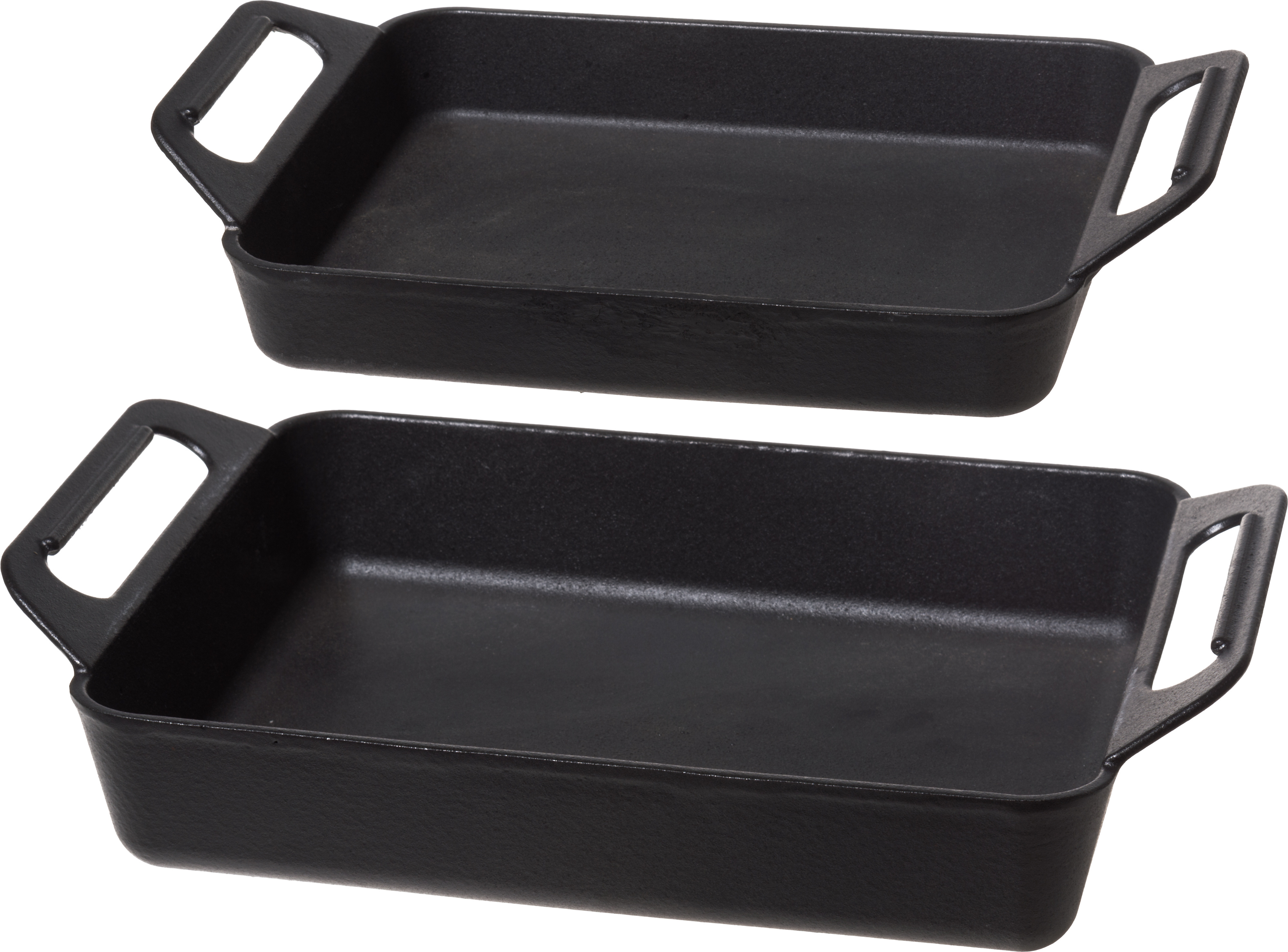 Kaksi erikokoista valurautapannua