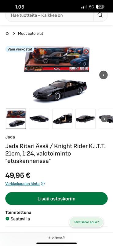 Täyttyy myöntää että hivenen petyin siihen että tota tunnusomaista etuvaloa ei saa jäämään vilkkumaan, muuten kaikille ritari ässän faneille pakko ostos, kattoluukutkin sais aueta, etuvalo sais vilkkua kauemmin, sais vilkkua siihen asti kun patterit loppu... metallista tehty ni tekee tästä tosi laadukkaa, kestää...