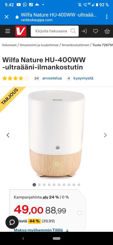 Todella toimiva ja hyvä ilmankostutin. Nyt jo 2kk käytössä eikä mitään moitittavaa.