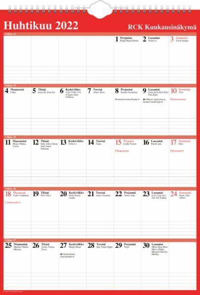RCK Kuukausinäkymä 2022 -seinäkalenteri