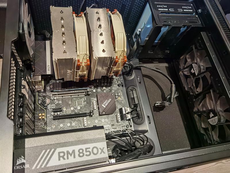 Halvimmasta päästä oleva Z690 DDR4 emolevy LGA1700 piirisarjalle ja kaveriksi Intel i5-12600k prosulle. Melko bulk levy eikä mitään ylimääräistä RGB-härpäkettä, mikä oli minulle plussa. Tarvittavat SATA liitännät hyvässä paikkaa siistille kaapeliasennukselle, niitä tarvittavat määrät omalle kokoonpanolle ja helppo levy asentaa itse HW:n puolesta. Myös Noctuan NH-D15 mahtui nätisti oikealla base socketilla levylle.
