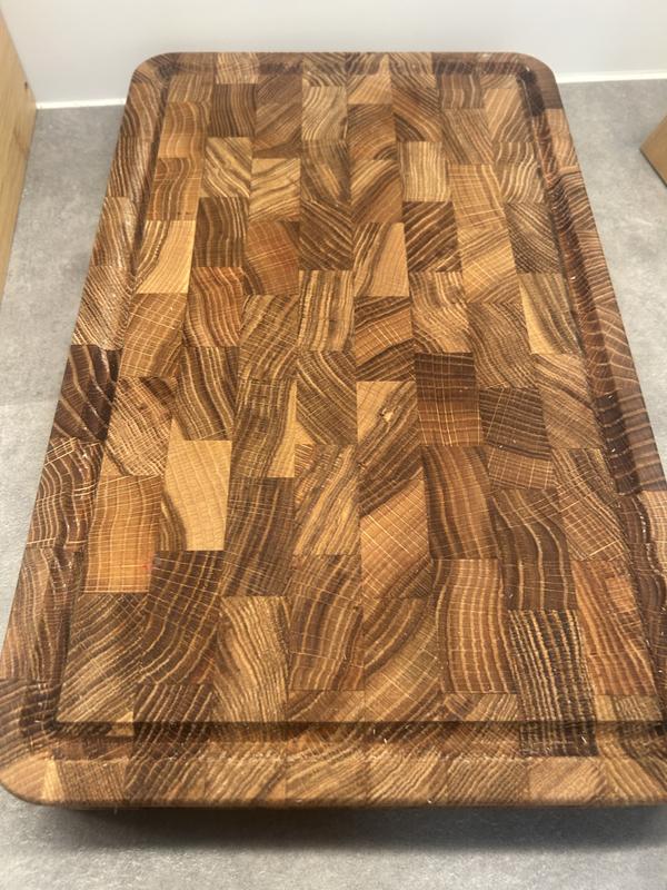 Leikkaaminen on ihan juhlaa tämän laudan kanssa. Lauta oli jo valmiiksi öljytty, joten öljystä ei ole vielä tietoa.