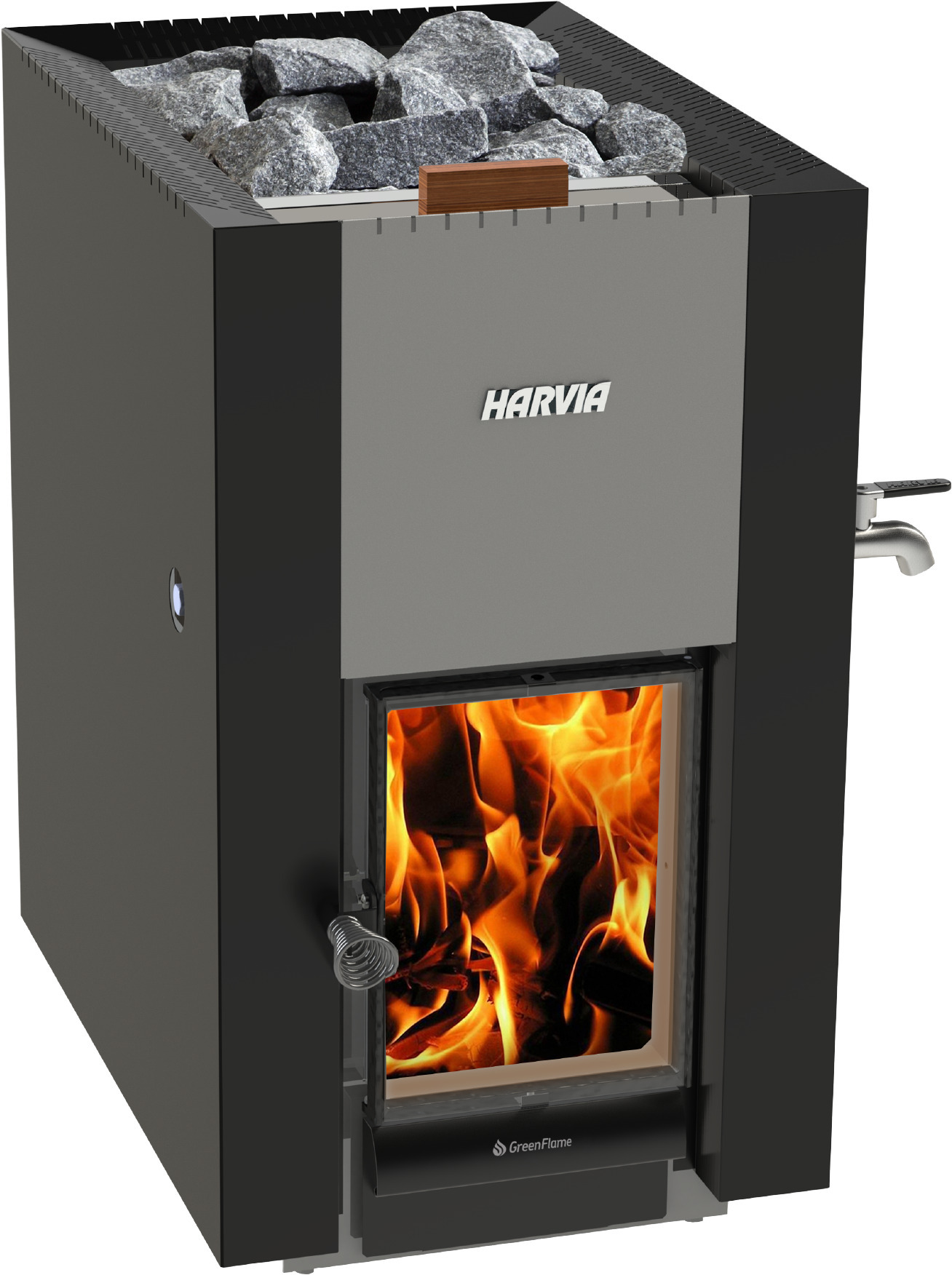 Harvia 22 GreenFlame ES -puukiuas kiinteällä vesisäiliöllä, musta