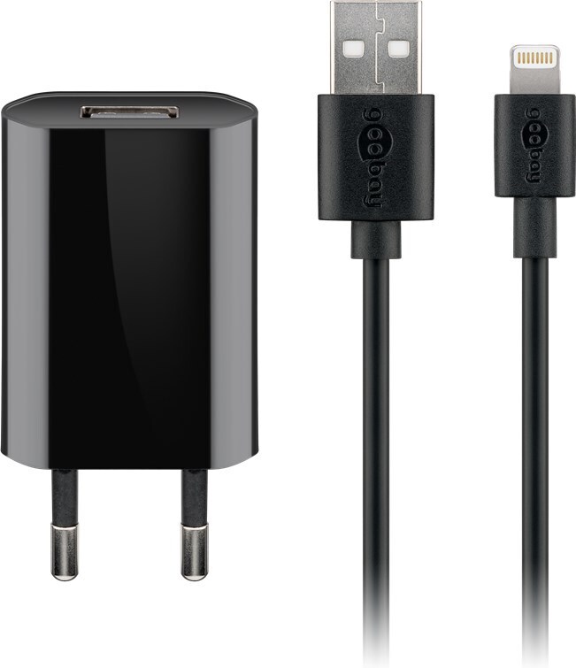 Goobay 5 W -virtalähde Lightning-kaapelilla, musta