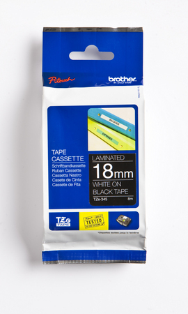 Brother TZe-345 -tarranauha, 18 mm x 8 m, valkoinen mustalla pohjalla