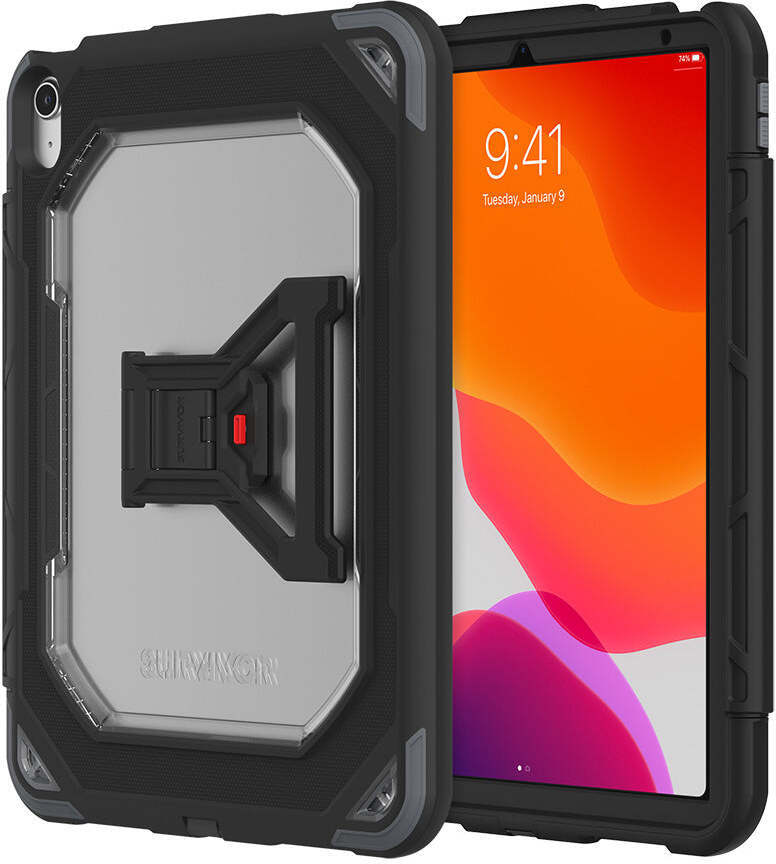 Griffin Survivor All-Terrain on uskomattoman kestävä suojakotelo Apple iPad Air (4th Gen) -tabletille. Suojakuoren kolme iskunvaimentavaa kerrosta tarjoaa suojan pudotuksilta, jotka täyttävät Yhdysvaltain puolustusvoimien vaatimukset. Suljetut portit ja integroitu näytönsuoja suojaavat iPadia lialta ja pölyltä. Erittäin monipuolinen jalusta mahdollistaa vakaan, miellyttävän ja turvallisen käytön.