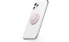 Puhelin pysyy hyvin kummassa tahansa kädessä pidikkeen avulla.