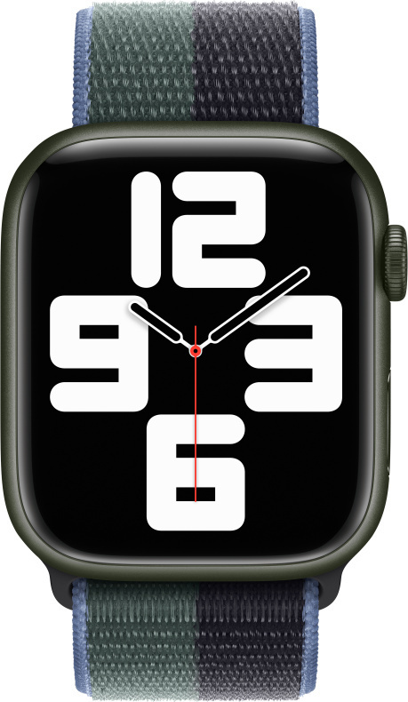 Apple Watch 45 mm keskiyönsininen/eukalyptuksen­vihreä Sport Loop -ranneke