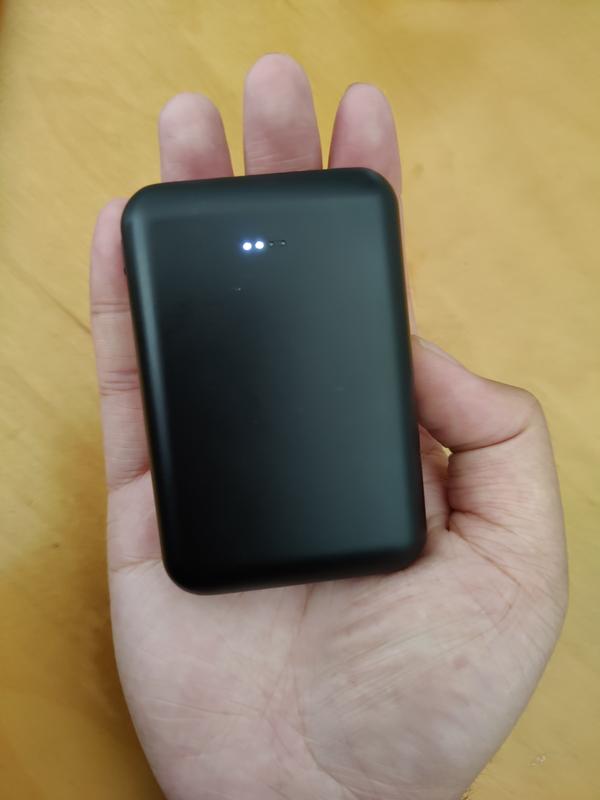 Positiivisesti yllätyin miten pienikokoinen ja kevyt tämä on. Osottautui itseasiassa kevymmäksi ja oli myös edullisempi kuin moni muualla "ultralightina" kaupattu 10000mAh powerbank. Näppärästi tämä mukaan vaellukselle niin ei tarvitse ostaa ihan niin montaa kalliimpaa vara-akkua kameroille. Minimaalisen lyhyt USB-piuha tuli myös mukana lataamista varten. Täydellistä.