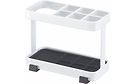 Tower hammasharjatelineeseen mahtuu kuusi hammasharjaa ja yksi hammastahna. Pohjan irrotettavat muovitassut pitävät telineen tukevasti paikallaan esimerkiksi lavuaarin reunalla.