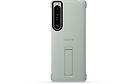 Xperia 1 IV -puhelimeen sointuva tyylikäs kuori suojaa puhelinta kulumiselta ja toimii myös telineenä, joka antaa juuri oikean kulman katsella videoita vaakasuunnassa.