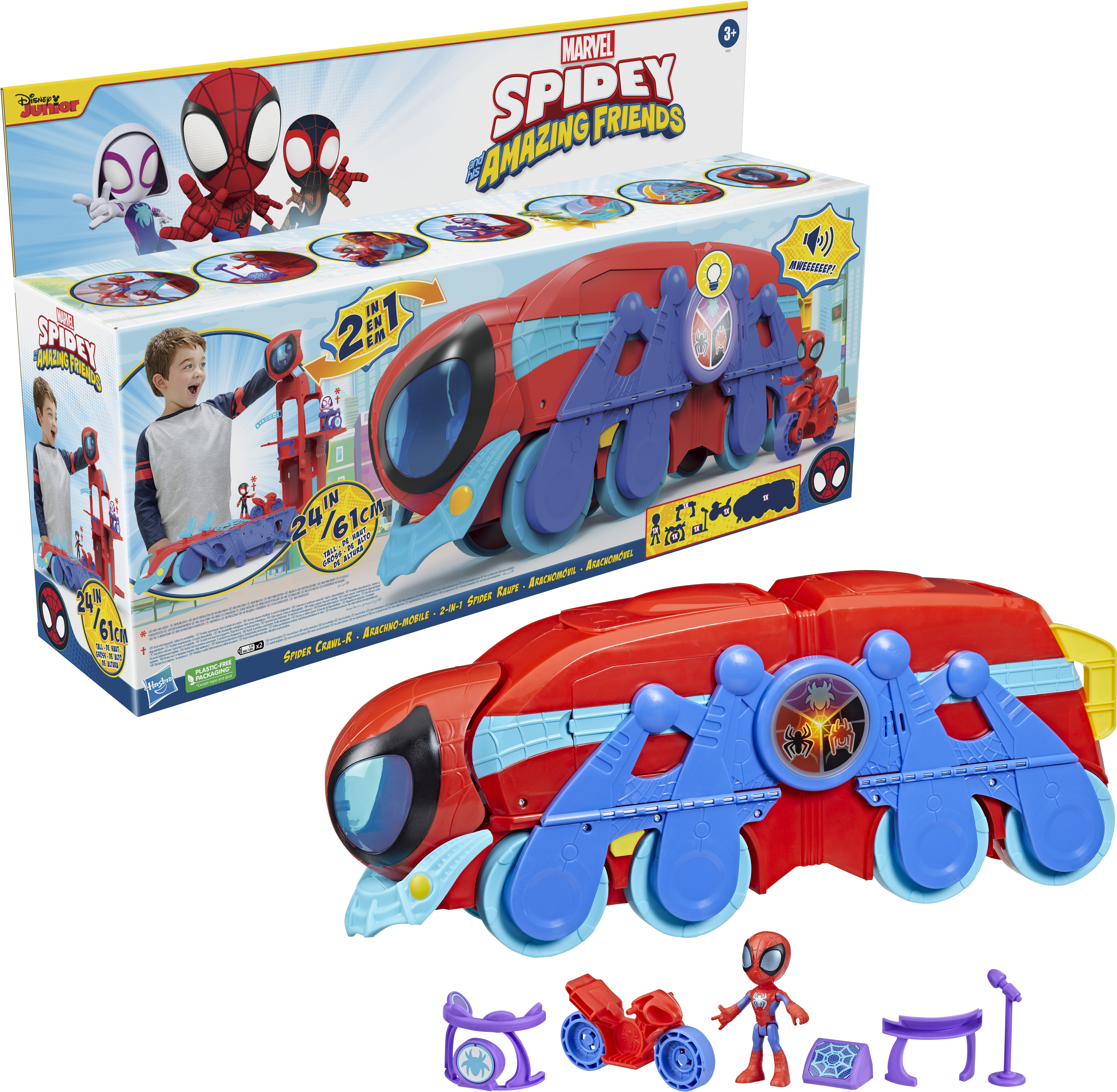 - Sisältää Spidey-figuurin ja ajoneuvon
