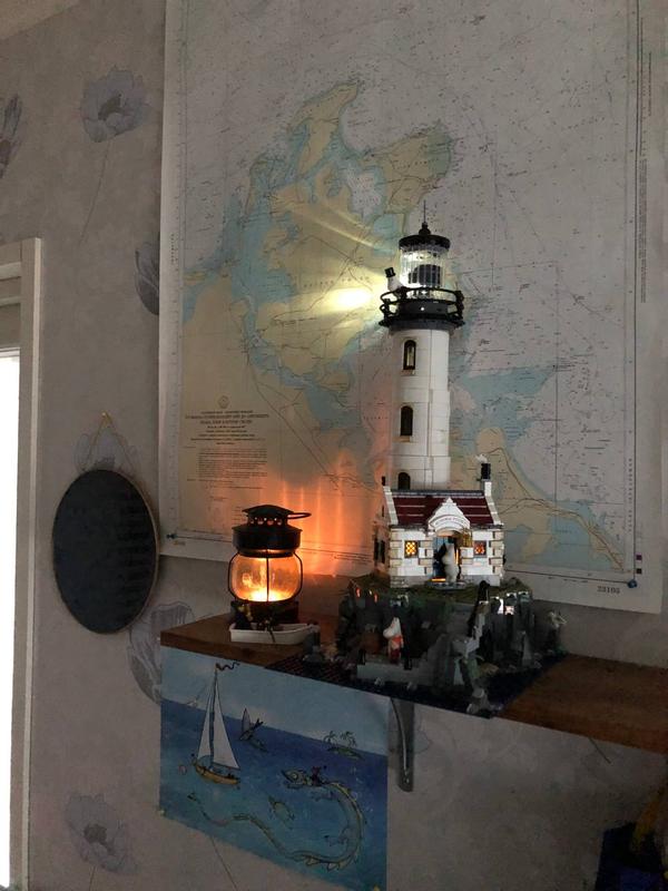 Hauska koota, onnistui hyvin jo 10-vuotiaalta joka rakennellut paljon aiemminkin. Mukavia pieniä yksityiskohtia ja majakan valo erityisesti hämärässä hienon näköinen.