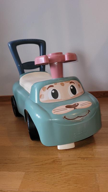 Hyvä kärry potkutteluun ja kävelyn opettelemiseen. Auton sisällä tavaratilaa leluille.