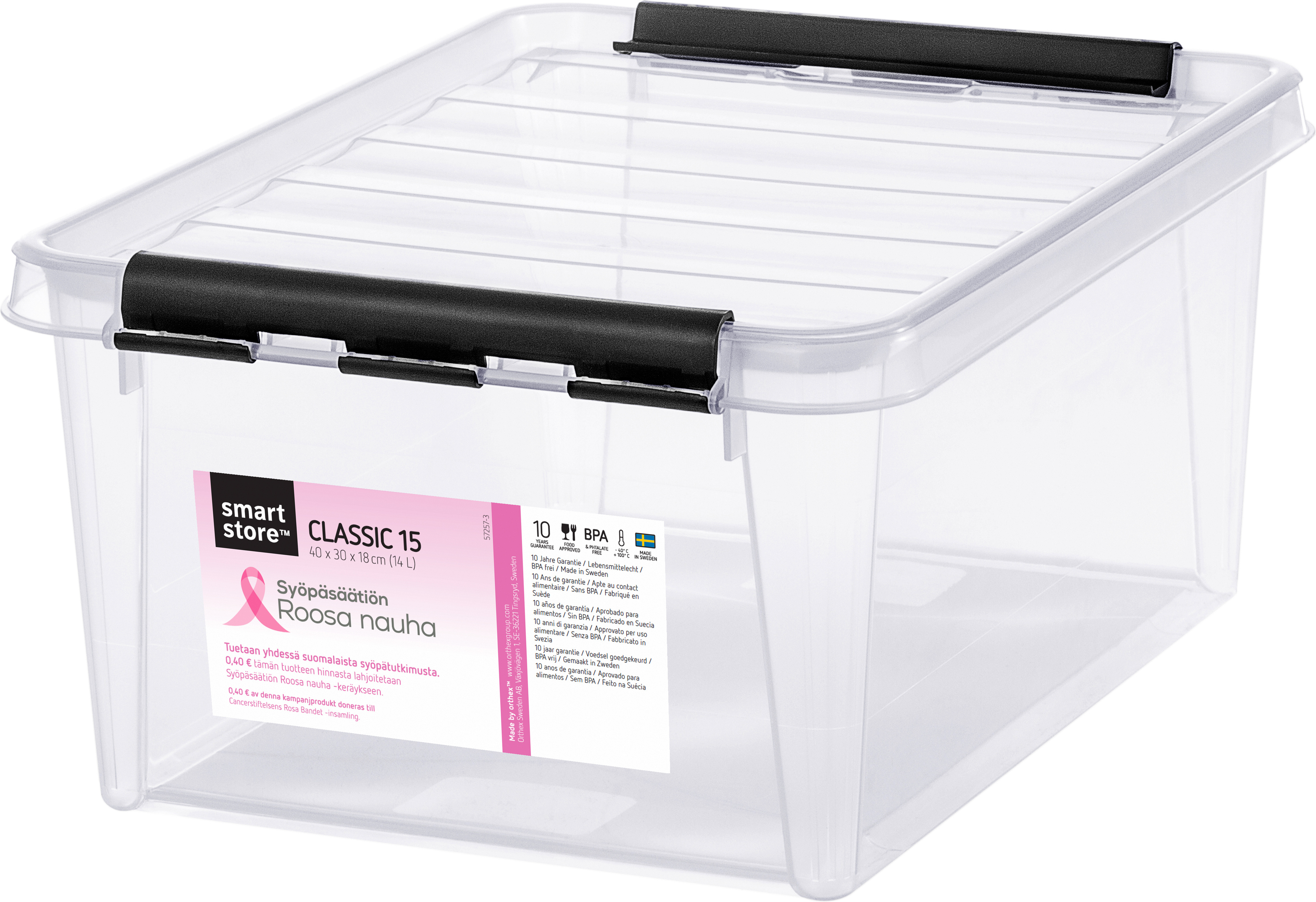 Orthex SmartStore Classic 15 Roosa nauha -säilytyslaatikko kannella