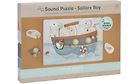 Meriaiheinen Little Dutch Sailors Bay -nuppipapalapeli äänitoiminnoilla innostaa leikkimään! 7 hauskaa äänitoimintaa tehostavat leikkejä entisestään! Anturit reagoivat, kun nostetaan palapelin palaa ja paljastetaan alla oleva kuva.