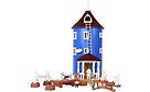 Muumipapan rakentama sininen Muumitalo komeilee laakson parhaalla paikalla. Hienossa aukeavassa talossa lapsi pääsee kurkistamaan Muumien kodin saloihin.