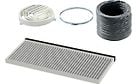 Pakkauksessa mukana Clean Air -aktiivihiilisuodatin, diffuusori, 800 mm joustoputki ø 150 mm, kiristin sekä muut asennustarvikkeet.