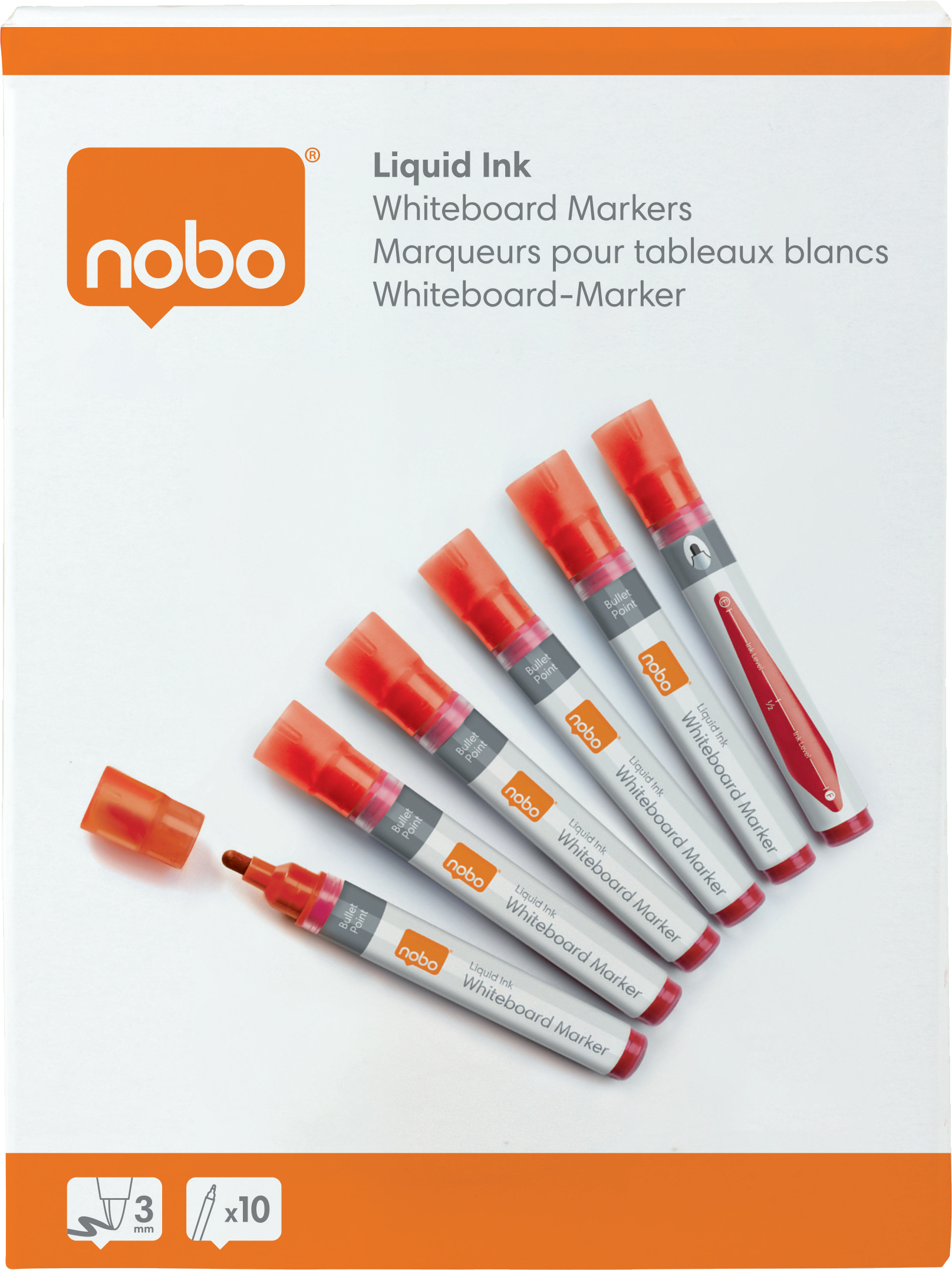Nobo Liquid Ink -valkotaulukynät, pyöreä kärki, punainen, 10 kpl