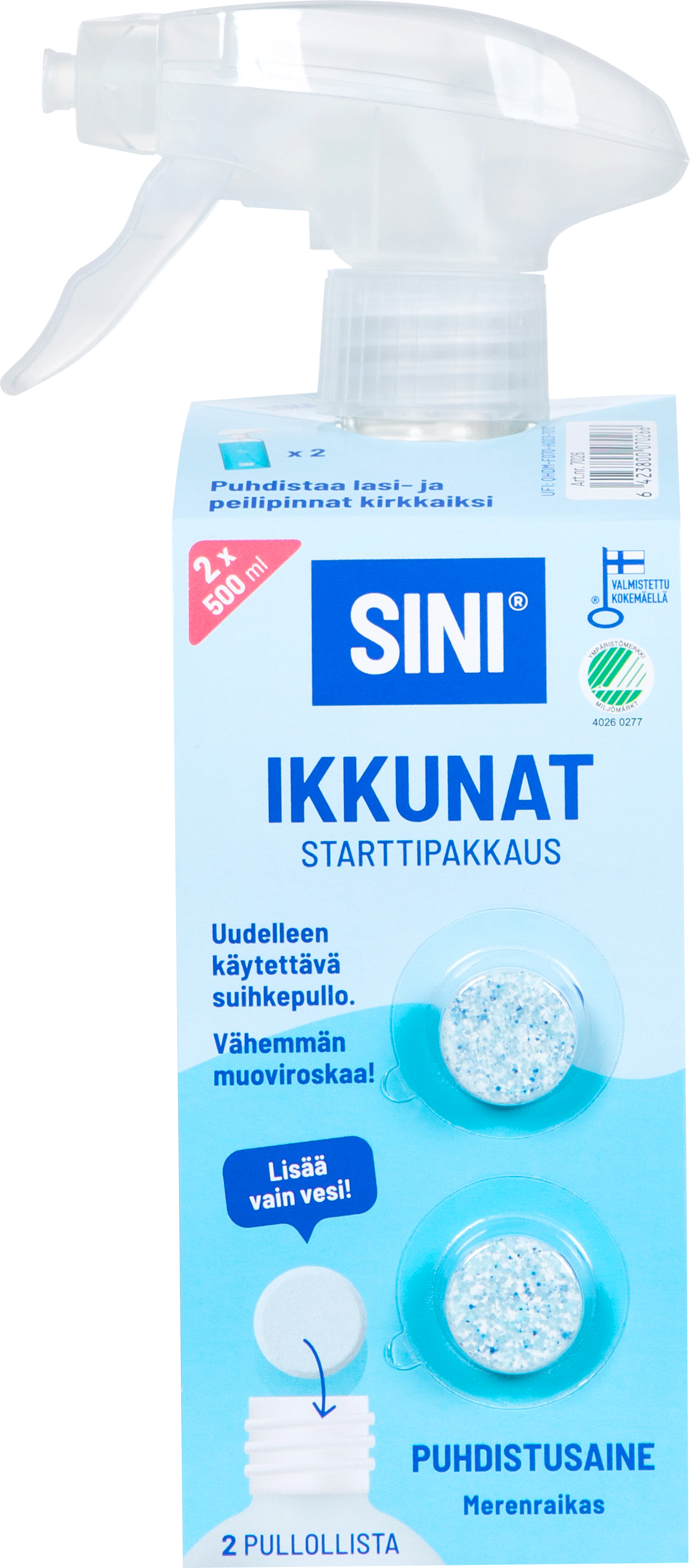 Sini Ikkunat puhdistusainetabletti, starttipakkaus: pullo + 2 tablettia