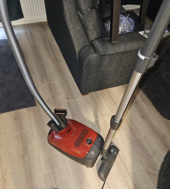 Tehokas, näppärän kokoinen perus imuri. Kova ääni, mutta imutehoa pystyy säätämään. Vähän kömpelö maton imurointi suulake, joutuu vain vetämään, eteenpäin viedessä matto rullaantuu.