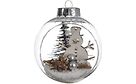 Decoriksen kauniissa joulukuusen koristepallossa on sisällä siluettimainen lumiukko ja pieni joulumaisema kuusineen