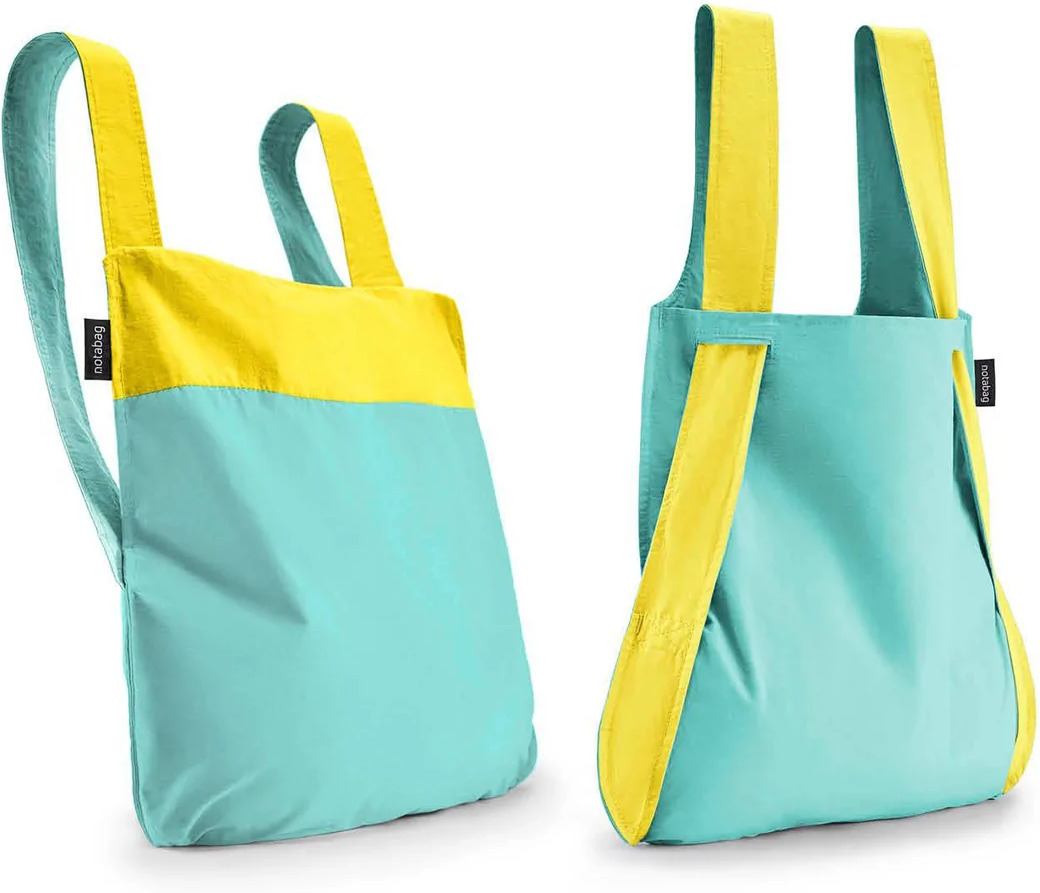 Notabag 2 color -kokoontaitettava kassi/reppu, keltainen/minttu