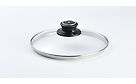 Swiss Diamond -lasikansi säädettävillä höyryaukoilla. Lasikansi on halkaisijaltaan 20 cm ja se soveltuu käytettäväksi myös uunissa, aina 260 °C asti.