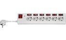 Virtakytkimillä varustettu laadukas jakopistorasia kuudella pistorasialla.
