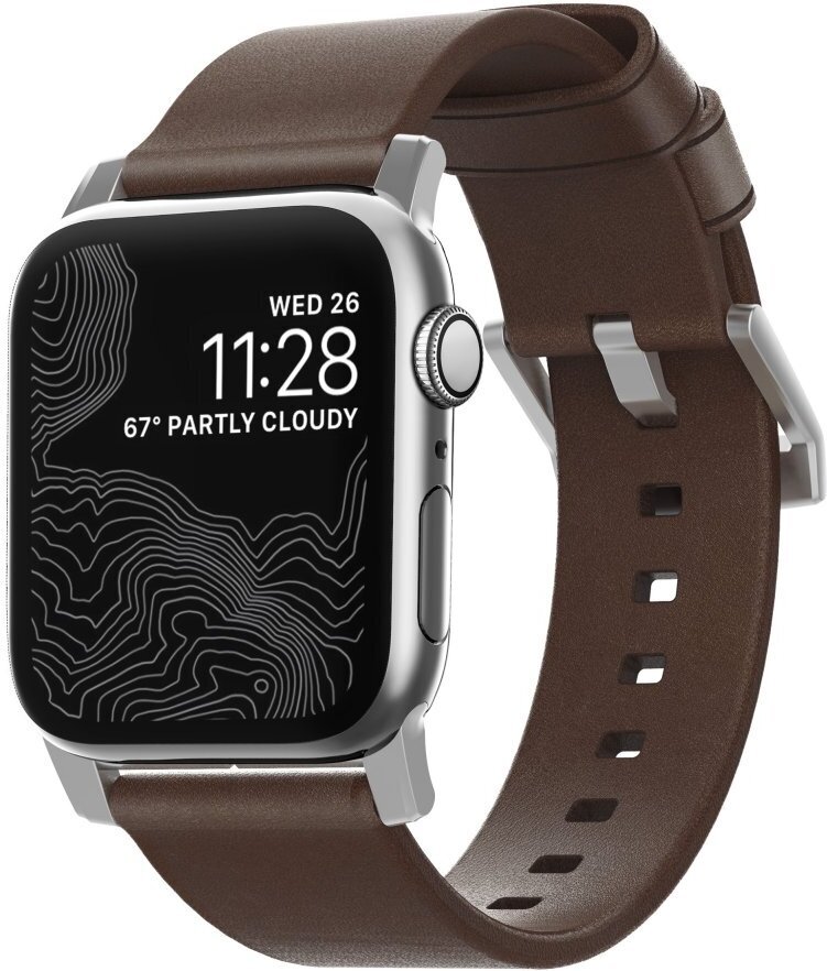 Nomad Modern Strap -nahkaranneke, Apple Watch 49 / 45 / 44 / 42 mm, hopea/ruskea
