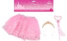 Ihastuttava pukeutumissetti tarjoaa täydelliset tarvikkeet prinsessaleikkeihin. Mukana hame, jossa kaunis kullanhohtoinen sydänkuvioitu printti, teemaan sopiva tiara ja kaunis helmikoristeinen valtikka.