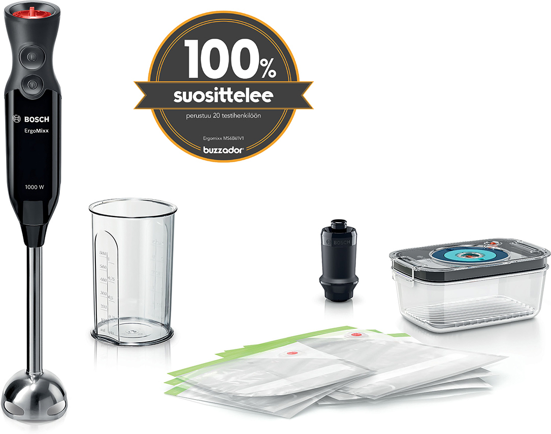 Bosch ErgoMixx MS6CB61V1 -sauvasekoitin vakuumipakkauksella, musta