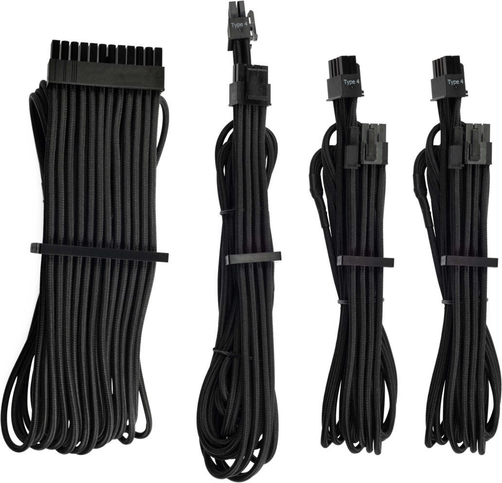 Corsair Premium Individually Sleeved PSU Cables Starter Kit, Type 4, Gen 4 -virtalähteen kaapelisetti, musta
