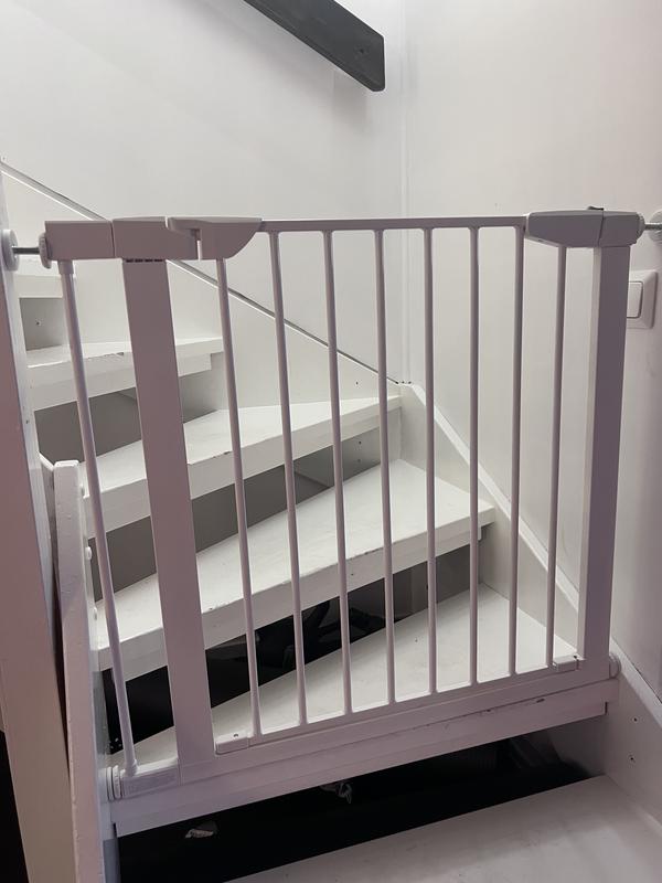 Tämä oli hyvä ostos. Portti on jämäkkä ja jatkopalan avulla saimme viritettyä siitä turvallisen suojan portaiden yläpäätyyn. Tuote oli nopea ja selkeä asentaa hyvien ohjeiden ja mukana tulevan työkalun avulla.
