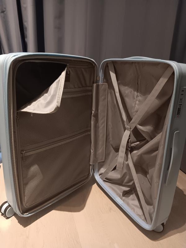 Todella kevyt matkalaukku. Hyvin pyörivät , hiljaiset rattaat. Viikon matkalle sopivan kokoinen. Olen tyytyväinen.