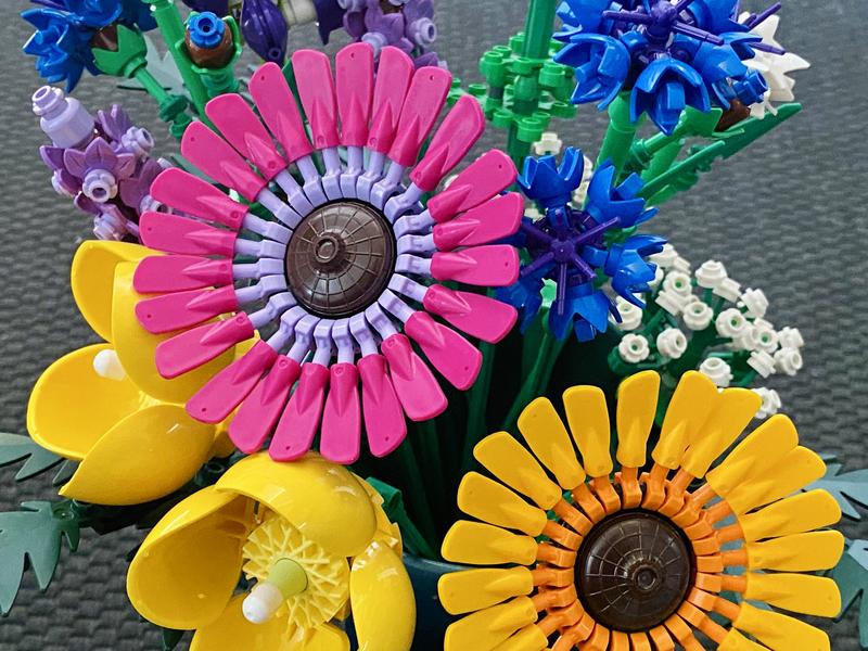 Rakentelin pojan kanssa tämän kimpun vaimolle synttärilahjaksi. Legolta hyvin suunniteltu, monipuolinen ja kekseliäs kokonaisuus, joka on visuaalisesti tasapainoinen ja antaa silmäniloa pitkäksi aikaa. Toimii hyvin myös yhdessä muiden Lego-kukkien kanssa. Vaatii rakennusaikaa yhdeltä ainakin kolme tuntia.