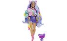 Barbie Extra -nuken iloinen tyyli huomataan! Pitkät laventelinväriset hiukset, värikäs perhosvillatakki, minihame ja pinkit saapikkaat yhdistettynä söpöihin asusteihin on kaikessa valloittavuudessaan todella extra!