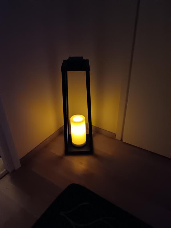 Säänkestävä, sopii hyvin avokuistille ja näyttää kauempaa varsin aidolta. Paristojen vaihto hieman hankalaa,