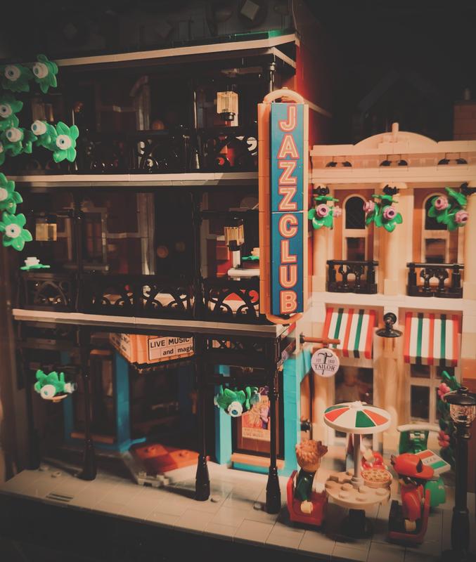 Jazz Club ei ole ulkoisesti eniten mieleeni, mutta interiööri on kiinnostavin ja hauskin koko sarjassa. Tarinat olivat hyviä ja minifigut hienoja. Olisin kuitenkin kaivannut hieman finalisointia molempiin. Omaan settiini lisäsin bändin keikalle muutamia katsojia, asiakkaita pizzeriaan, henkilön räätälille pukusovitukseen ja Jazz Clubille omistajan, joka läksyttää setin taikuria tämän karkailevasta kanista. Lisäksi interiööristä puuttuu baaritiski vaikka pöydistä löytyy pulloja ja laseja.