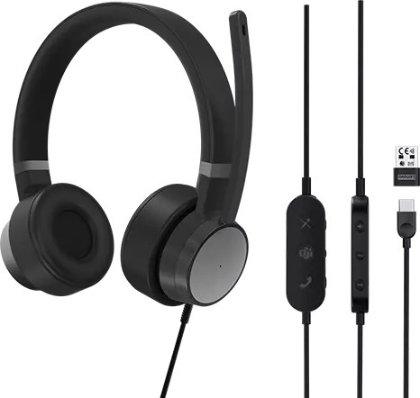 Lenovo Go Wired ANC Headset -langallinen headset, musta