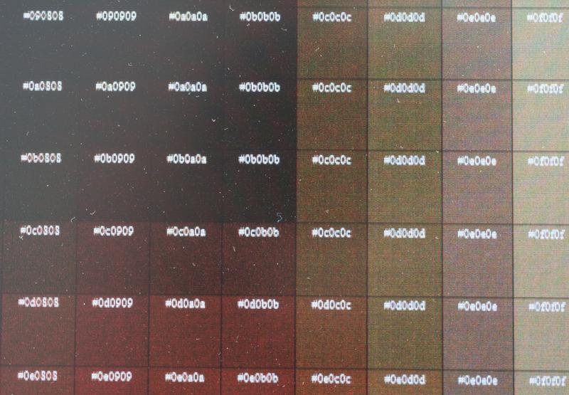 I attached two photos: one from a game and another from a test pattern with squares of colors. As you may see on test pattern: all colors below #0b0b0b (so all from 0 to 11 out of 255 range) are completely black. And then a huge step between #0e0e0e and #0f0f0f.