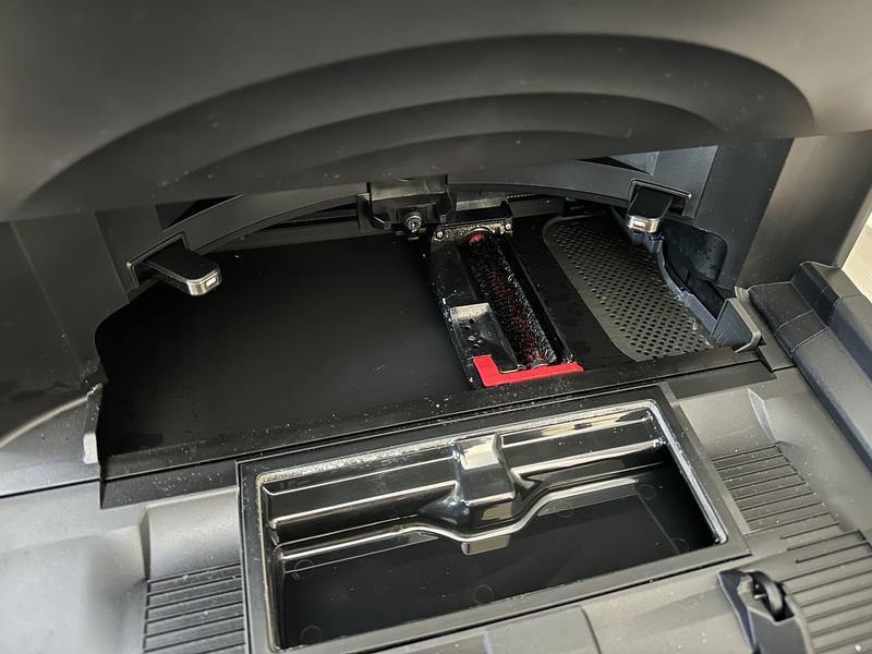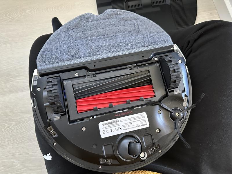 Kuvassa robotti ja telakka neljän siivouskerran jälkeen ilman, että robottiin on kertaakaan koskettu. Pyöriviin teloihin oli kertynyt jonkin verran hiuksia ja moppi alkoi olla pesukonetta vailla. Näyttäisi siis sille, että robotti vaatii hetken huomiota kerran viikossa, joka ei ole paljoa vaadittu.