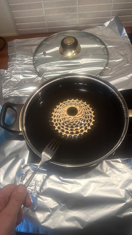 Ajoin kuumavauhauksen jälkeen ketjulla 1300km ilman mitään huoltoa. Ei pitänyt vieläkään mitään ääntä, mutta laioin nyt seuraavan kuumavahatn ketjun pyörään ja edellisen odottamaan seuraavaa vahauskierrosta. Samalla kertaa meni neljät ketjut samaan kattilaan yhdellä vahauskerralla.