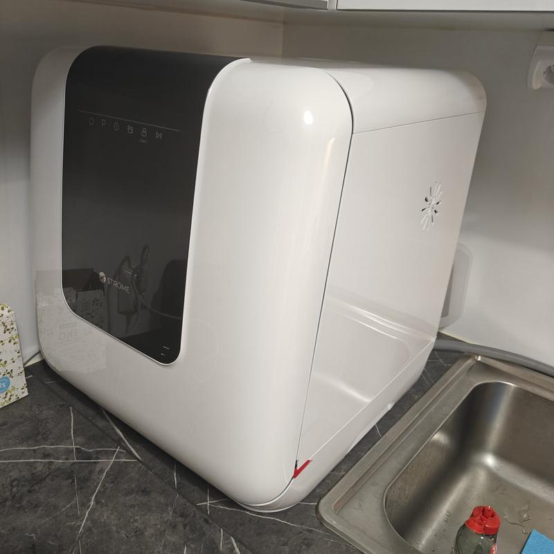 Tämä pieni astianpesukone on täydellinen pieneen toimistoon, joka ei halua sitoutua putkitöihin ja niihin liittyviin kustannuksiin. Minun tarvitsee vain kytkeä se sähköön, täyttää vesi ja painaa nappia! Laite piippaa, kun vedenpinta on täynnä.