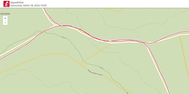 Harjoitusanalyyseissä näkyy GPS:n tarkkuus: samaa latua vastakkaiseen suuntaan hiihdettäessä jälki ei tule päällekkäin. Latujen väli on jotain 3 metriä.