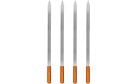 4 kpl 60 cm pitkiä saslikvartaat. Grillaa maukkaat saslikit tai varraskebabit näillä laadukkailla teräksisillä saslikvartailla. Litteä muoto estää ruokia pyörimästä vartaan ympäri. Puiset kahvat estävät käsien palamisen.