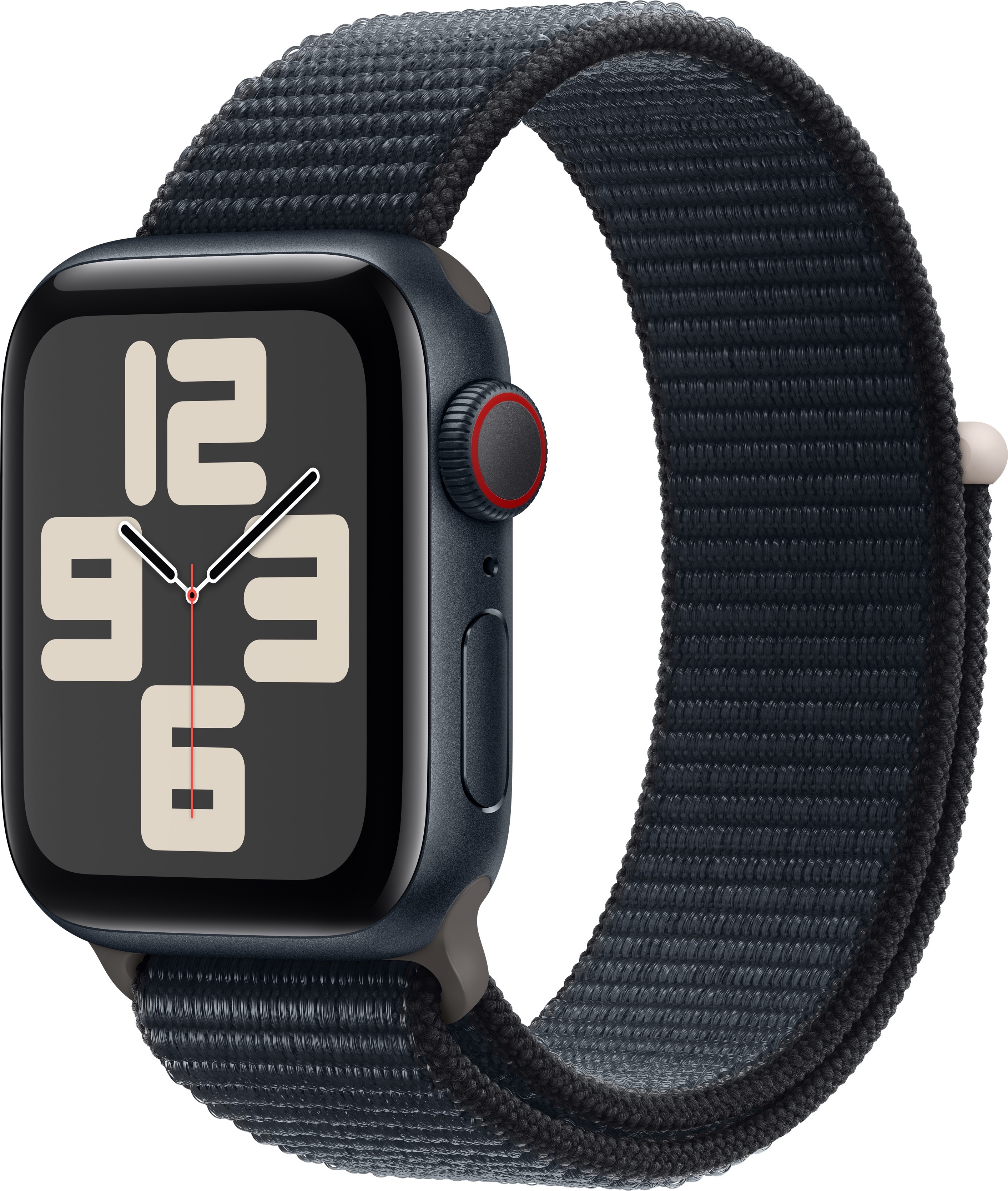 Apple Watch SE (GPS + Cellular) 40 mm keskiyönsininen alumiinikuori ja keskiyönsininen Sport Loop-ranneke (MRGE3)