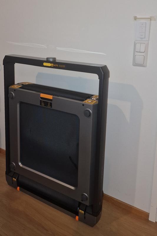 Toimii hyvin kävelymattona työpöydän alla. Myös nopeampi juoksu onnistuu. Saa pieneen tilaan säilytystä varten.