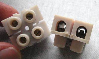 The wiring is done with a similar screw terminal than in the picture. The lamp will be drilled to the ceiling with four screws.