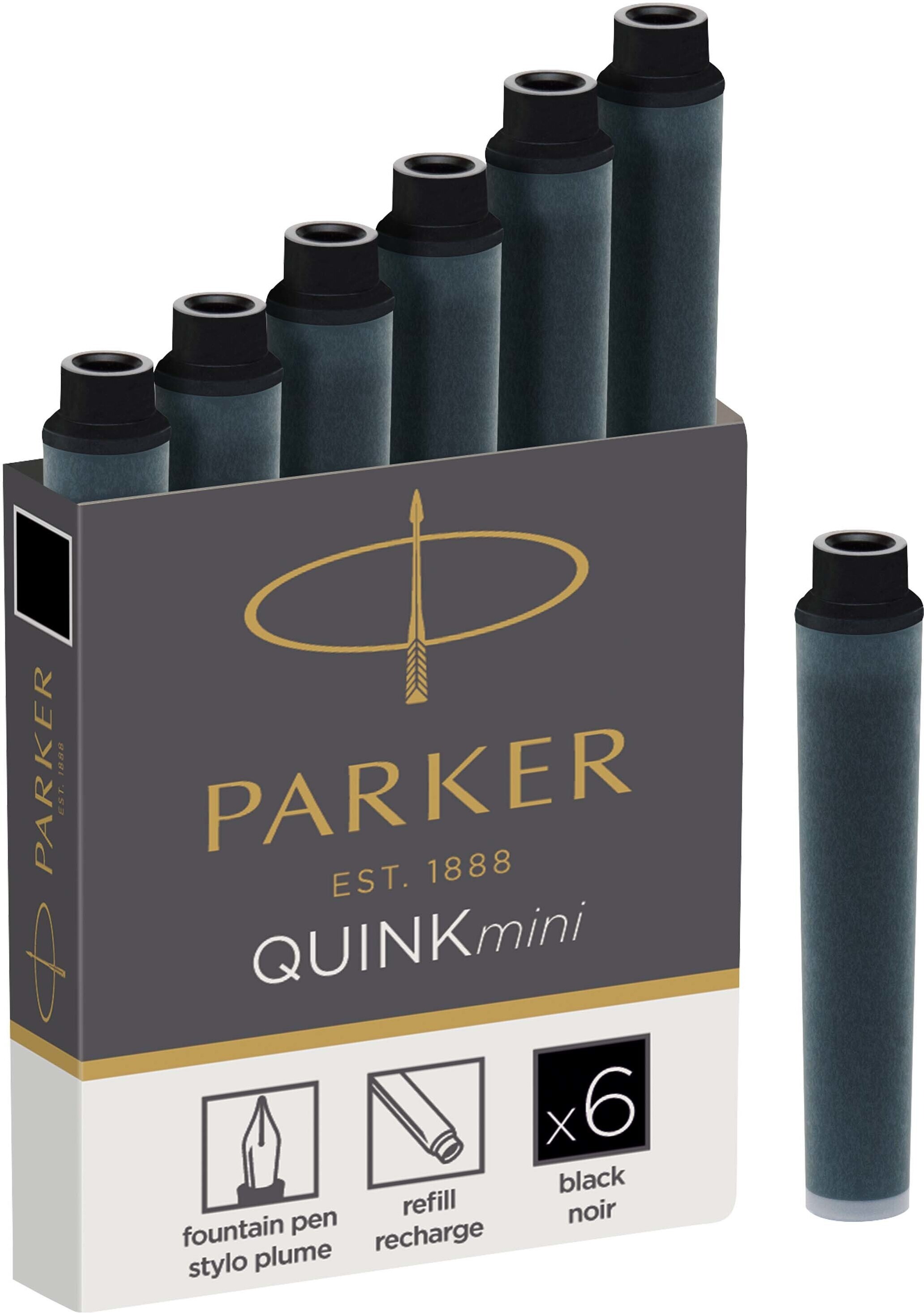 Parker Ink Cartridge Quink Mini -vaihtomustesäiliö, musta, 6 pakkausta